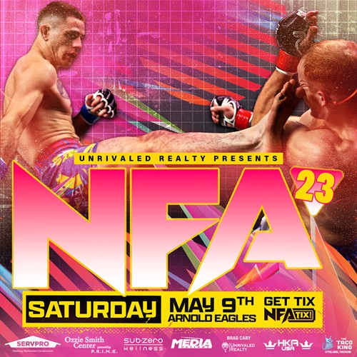 NFA is BACK for Nemesis 23 on SATURDAY May 9th for an action packed night of Pro and Amateur Mixed Martial Arts. Live from Arnold Eagles Hall.